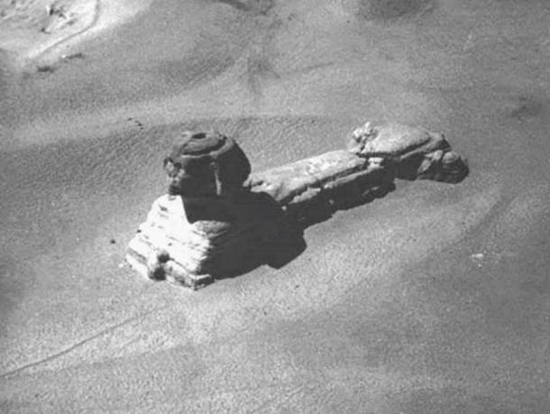1920s aerial photo shows a hole in the sphinx’s head (Public domain)